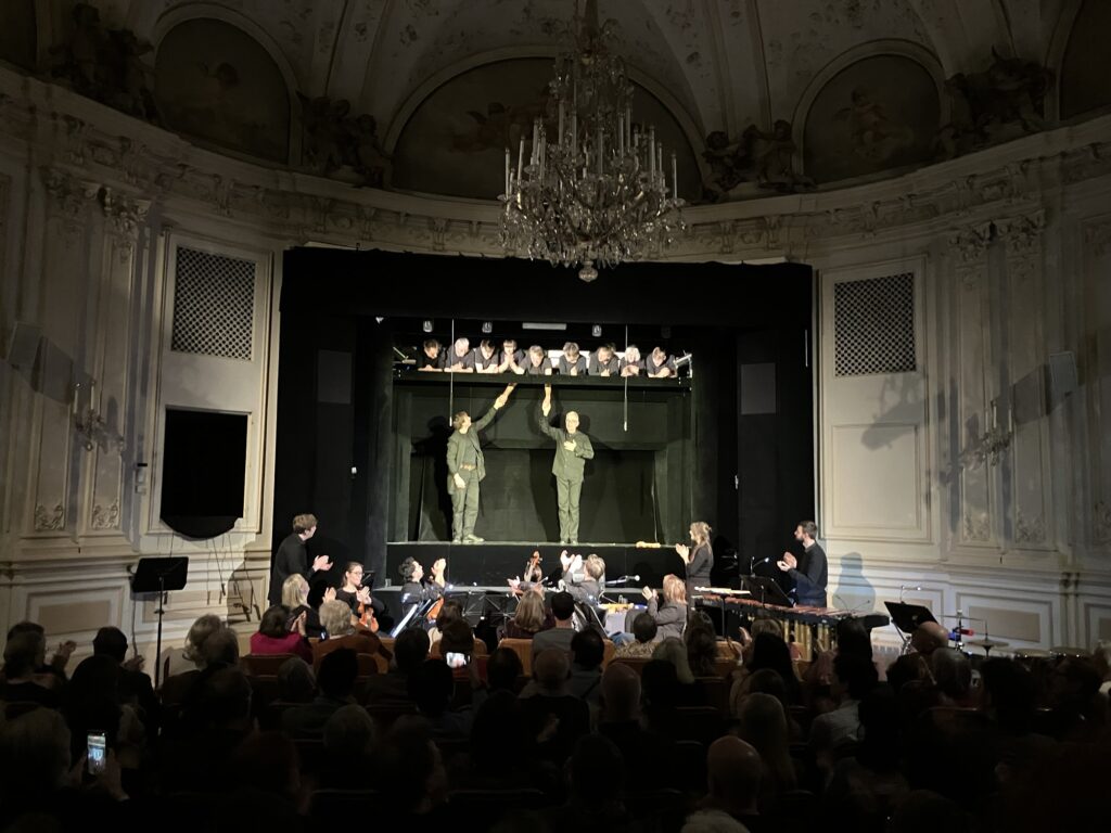 自然破壊をテーマとした演目で、モーツァルトの名曲を歌い手3名と小さな合奏団が出演して、マリオネットと共演するというもの。歌い手さんも演奏家もみんな上手で、日本でこのレベルのことはできないのではないかな〜。音楽家の実力の問題ではなくて、文化や環境に対する意識がもっと高まらないと、、、