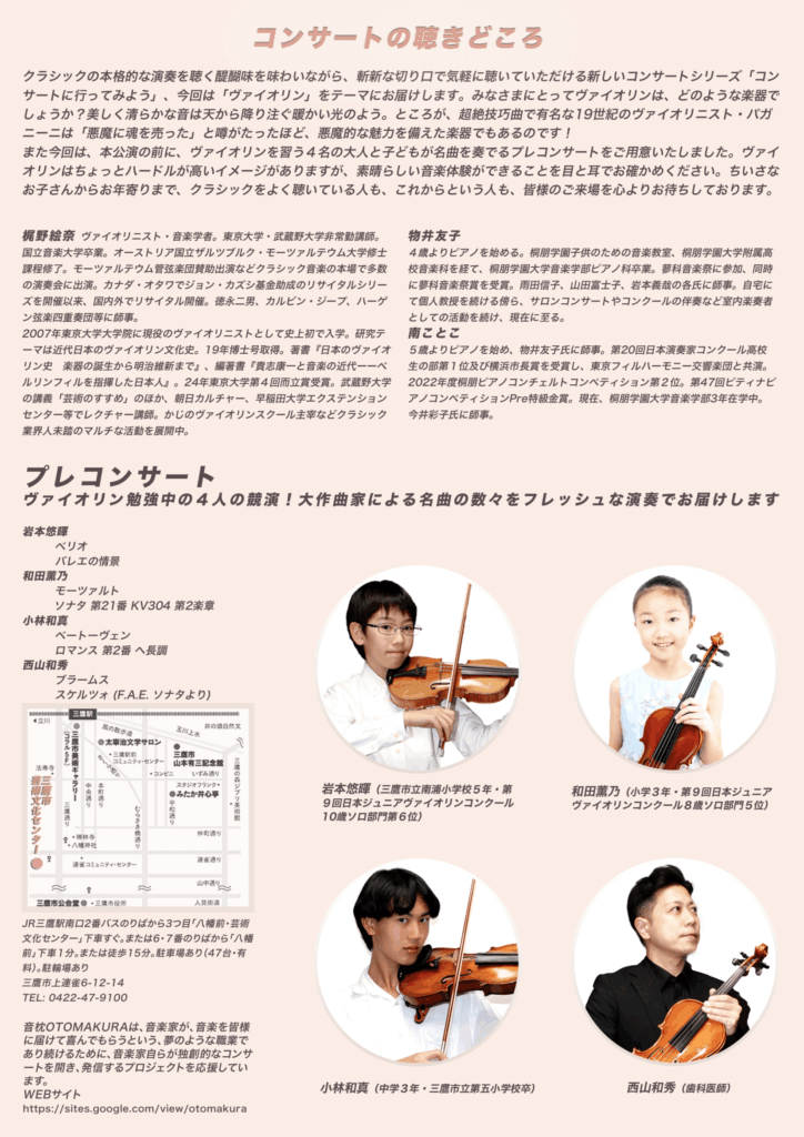 ヴァイオリンの魅力と楽しさを、演奏とレクチャーでお届けします